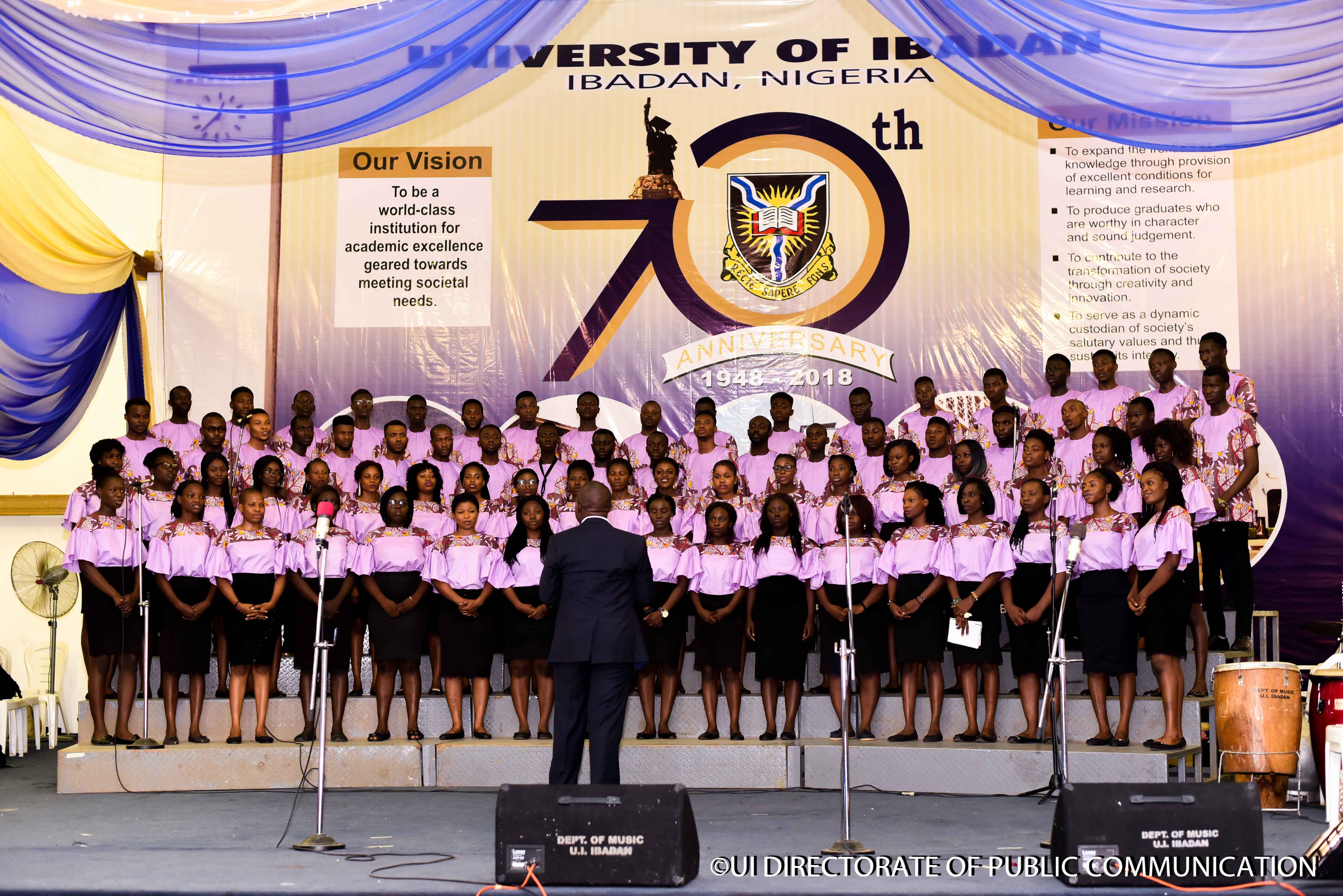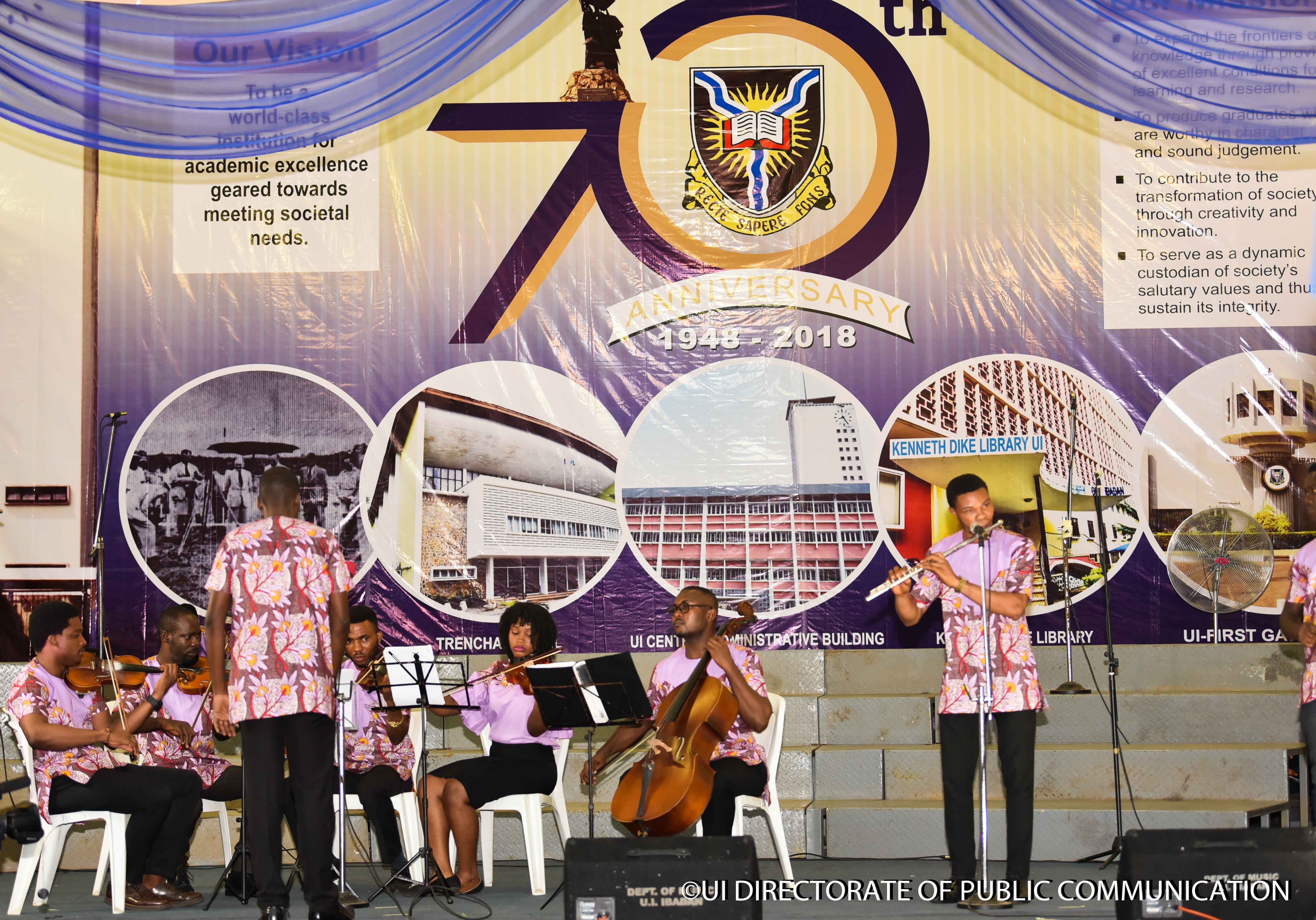 A part of the activities lined up for the 70th Anniversary, the Department of Music engaged the audience present at the 2018 Convocation concert in a relaxed mood with songs and the musical instrument as the Head of Department, Dr. Tolu Owoaje and other lecturers conducts passionately especially during a song called " Thanksgiving Medley.