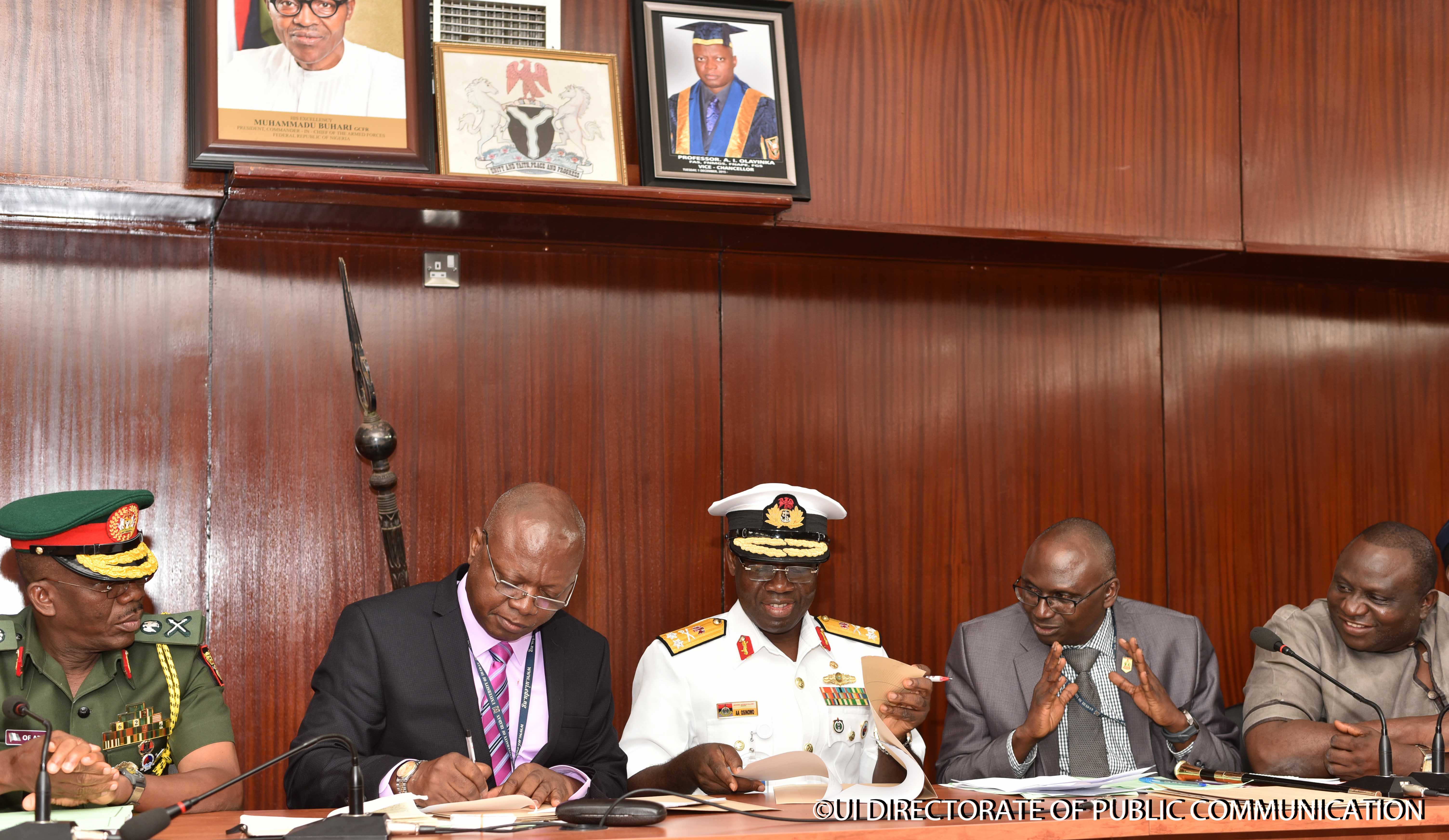 Signing Ceremony of the Memorandum of Understanding (MoU) between University of Ibadan and National Defence College (NDC) at the Senate Chamber, University of Ibadan on Monday, 11 June, 2018.