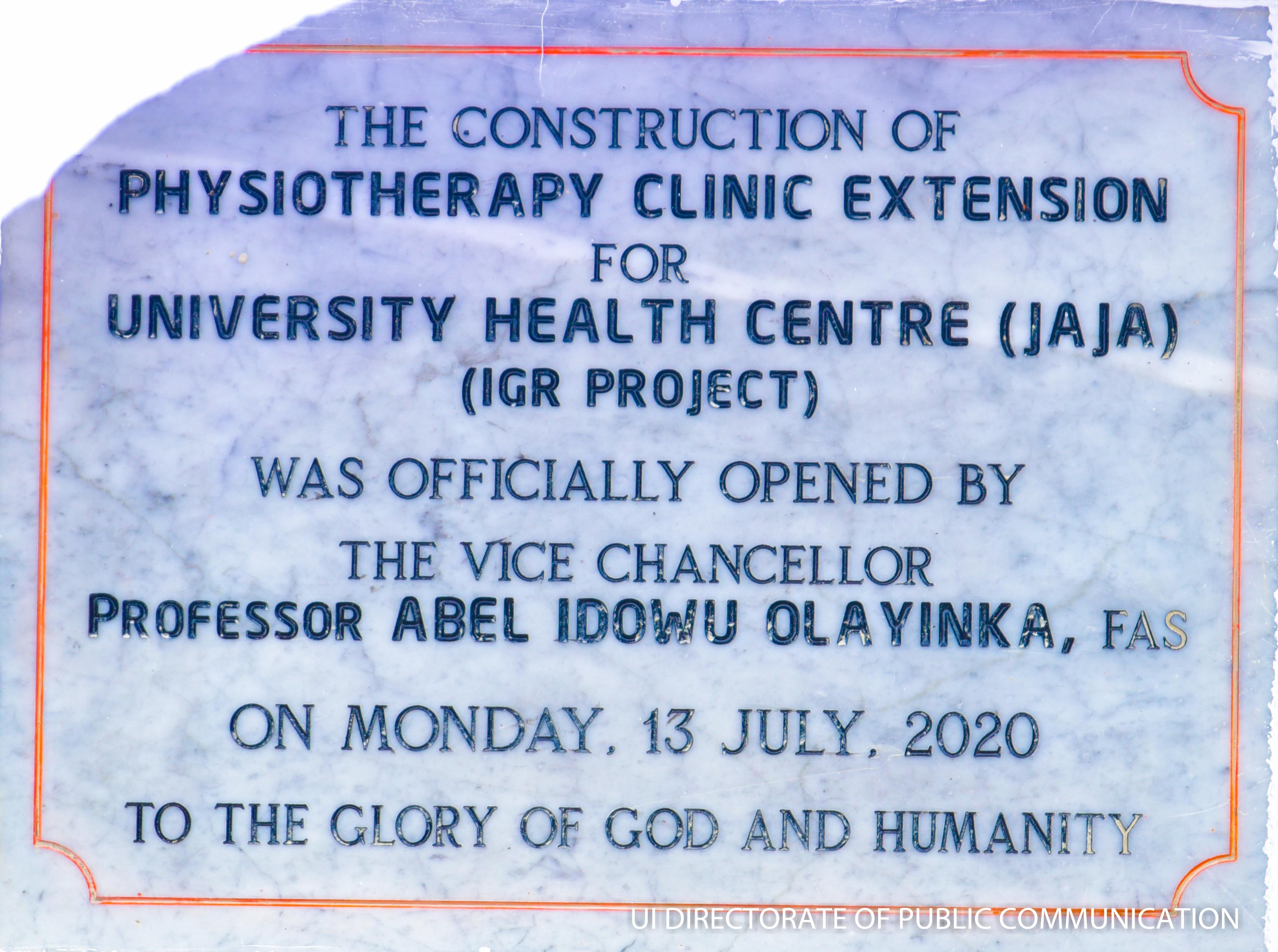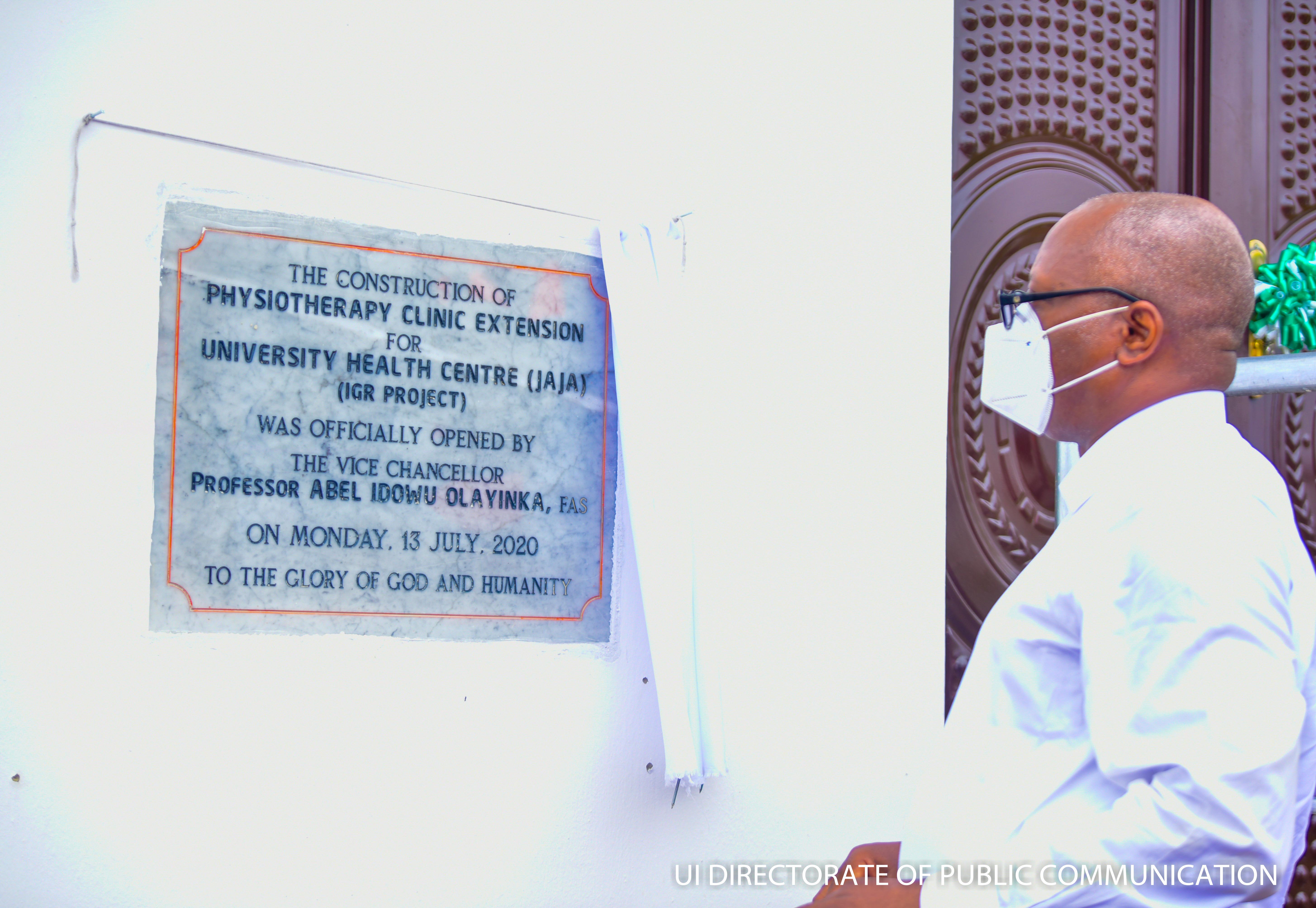 The Vice-Chancellor, University of Ibadan, Professor Abel Idowu Olayinka, has opined that there is a noticeable increasing awareness on health matters since the breakout of the Covid-19 pandemic. He made this assertion while commissioning the Physiotherapy Clinic extension of University Health Services (Jaja Clinic) on Monday, 13 July 2020. Prof Olayinka expressed his delight at seeing the project which has been decided and approved several years back came to fruition.