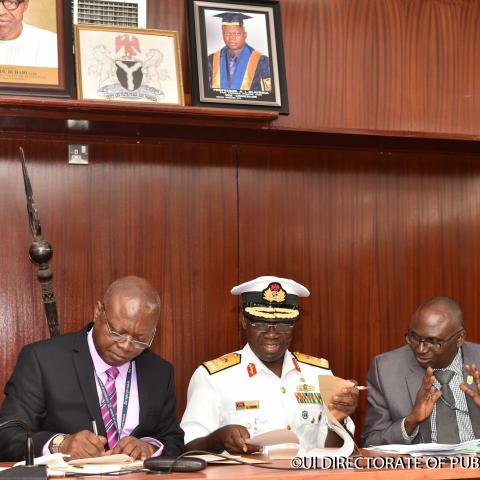 Signing Ceremony of the Memorandum of Understanding (MoU) between University of Ibadan and National Defence College (NDC) at the Senate Chamber, University of Ibadan on Monday, 11 June, 2018.