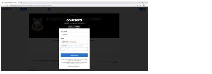 You will be required to sign up. Use your @stu.ibadanedu.com email to take advantage of the special free courses. Confirmation message will be sent to your email.